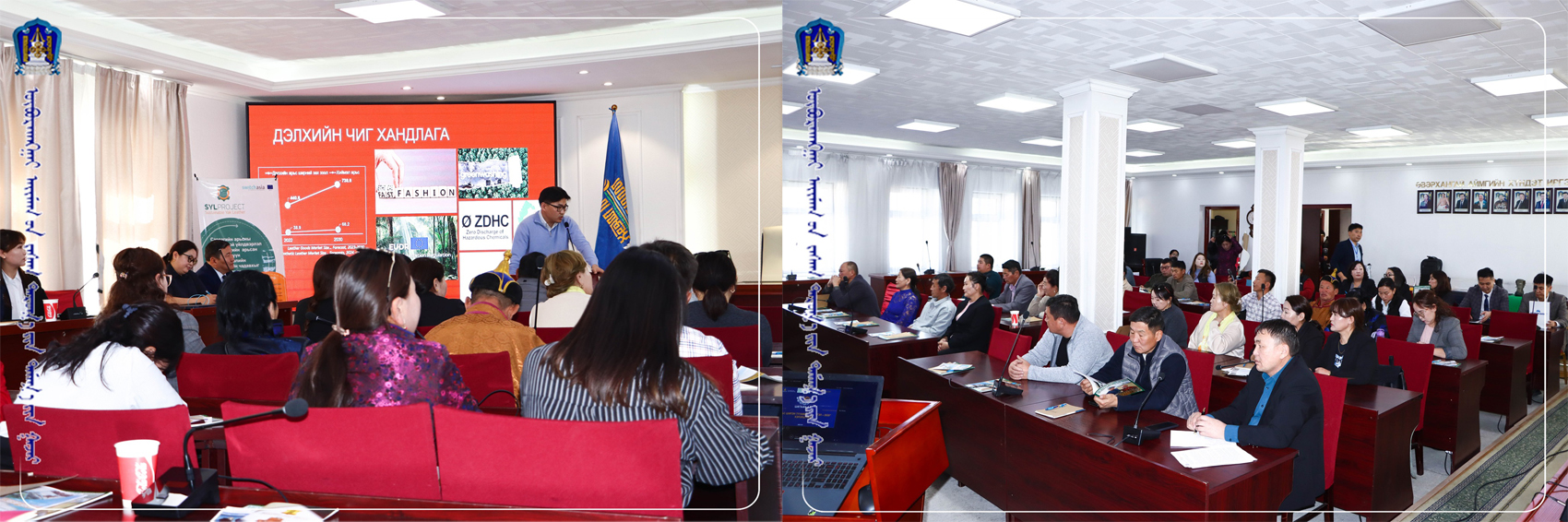 Сургалт хэлэлцүүлгийн үеэр арьс, ширэн түүхий эдийг боловсруулан үйлдвэрлэсэн гутал, савхин хүрэм, цүнх зэрэг бүтээгдэхүүний танилцуулга, үзэсгэлэнг зохион байгуулж байна.