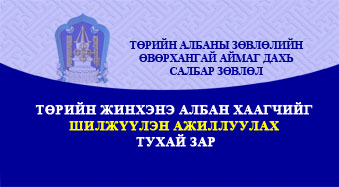 ТӨРИЙН ЖИНХЭНЭ АЛБАН ХААГЧИЙГ ШИЛЖҮҮЛЭН АЖИЛЛУУЛАХ ТУХАЙ ЗАР