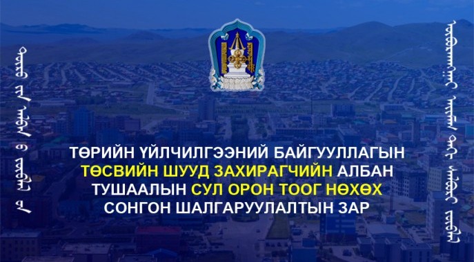УДИРДАХ АЛБАН ТУШААЛЫН СОНГОН ШАЛГАРУУЛАЛТЫН ЗАР /Баян-Өндөр сумын Соёлын төв, Богд сумын Соёлын төвийн удирдах албан тушаалтан/